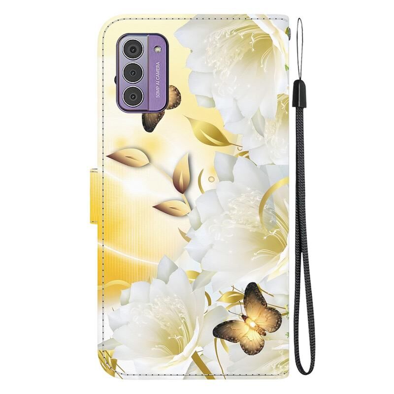 Θήκη τηλεφώνου Nokia G42 Κρυστάλλινη Υφή, Χρωματιστό Σχέδιο Δέρματος (Χρυσή Πεταλούδα Τριαντάφυλλο)