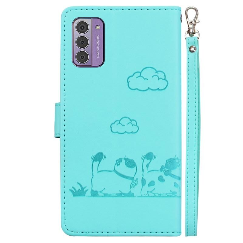 Θήκη τηλεφώνου Nokia G42 Cute Cats από δέρμα με RFID (Χρυσό Ρόδι)