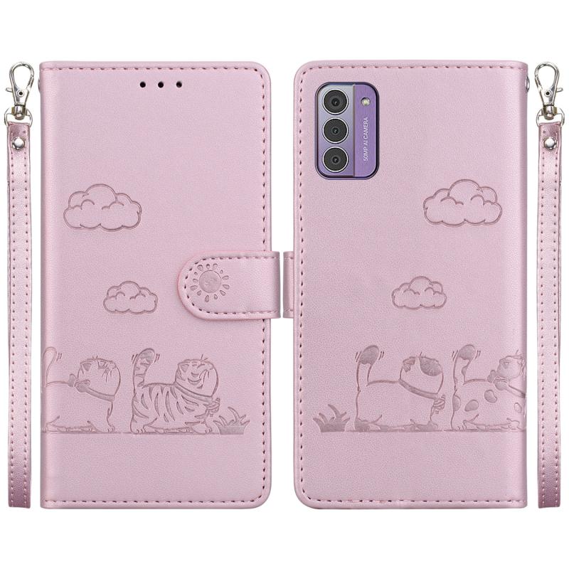 For Nokia G42 Cute Cats RFID Leather Phone Case(Rose Gold)