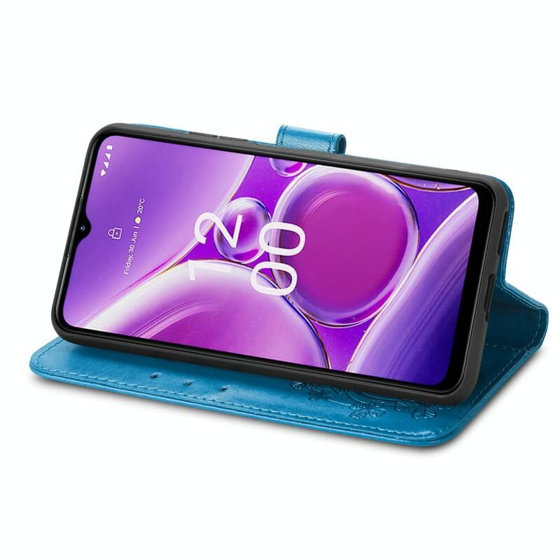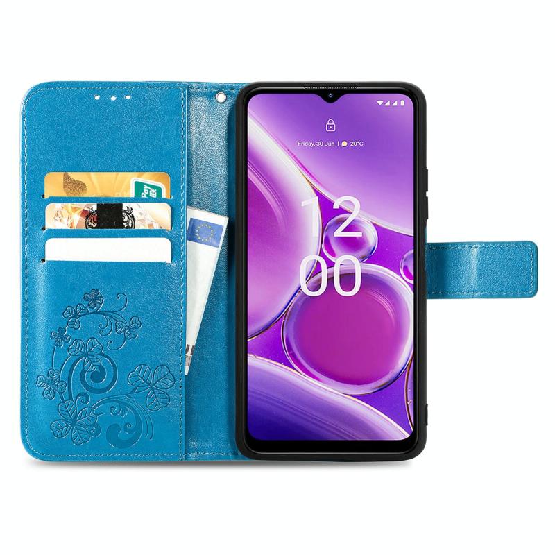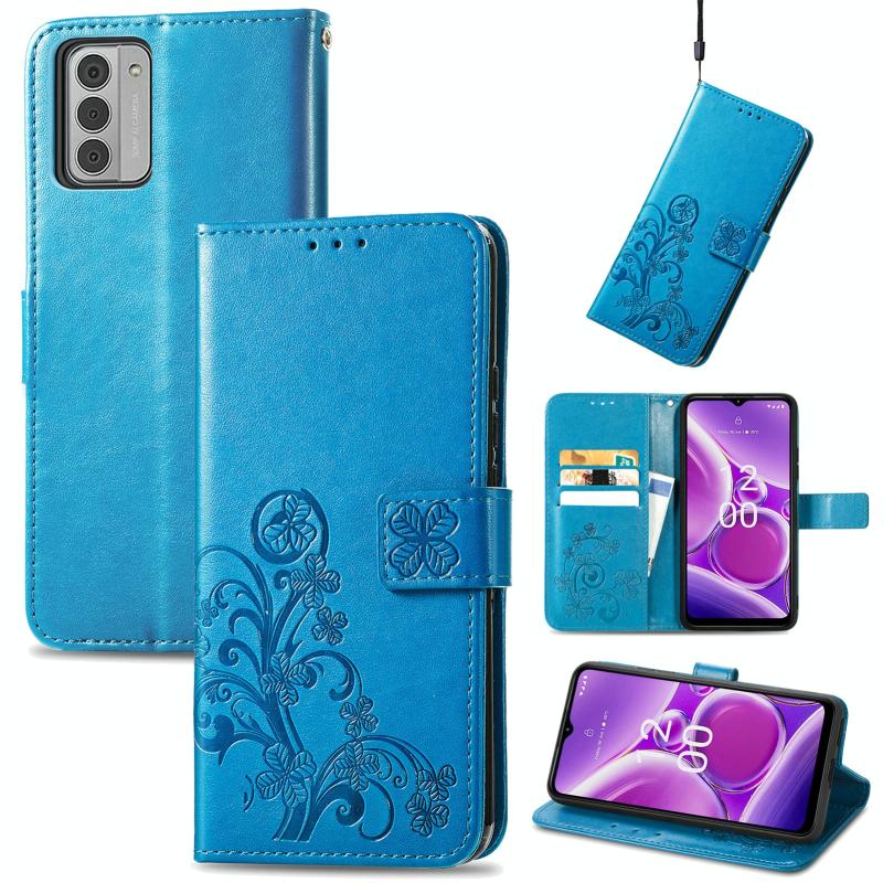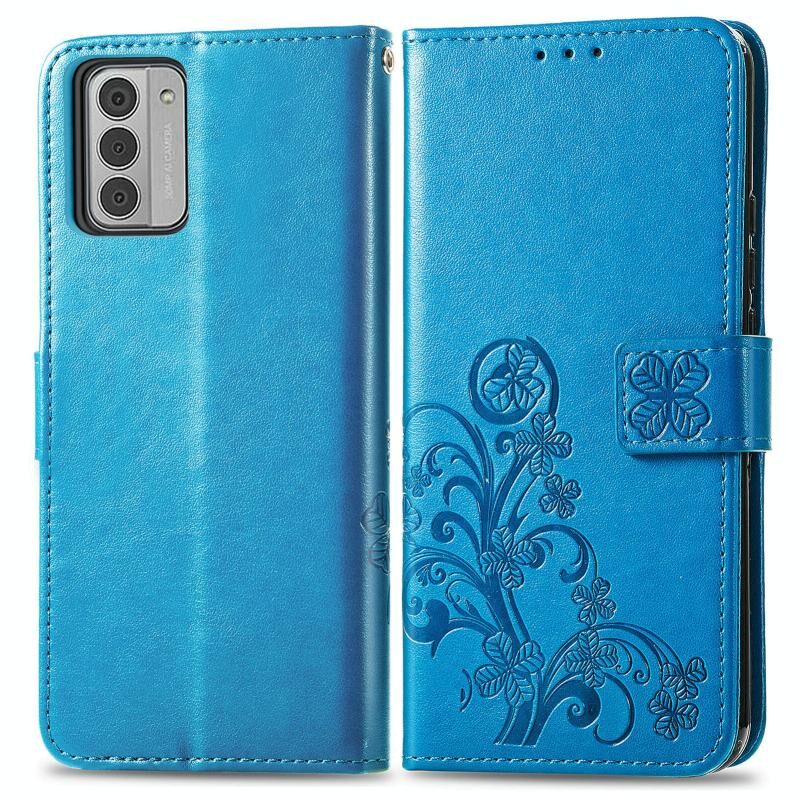 Για Nokia G42 Δερμάτινη Θήκη με Έμβοση και Κούμπωμα Τριφύλλι (Μπλε)