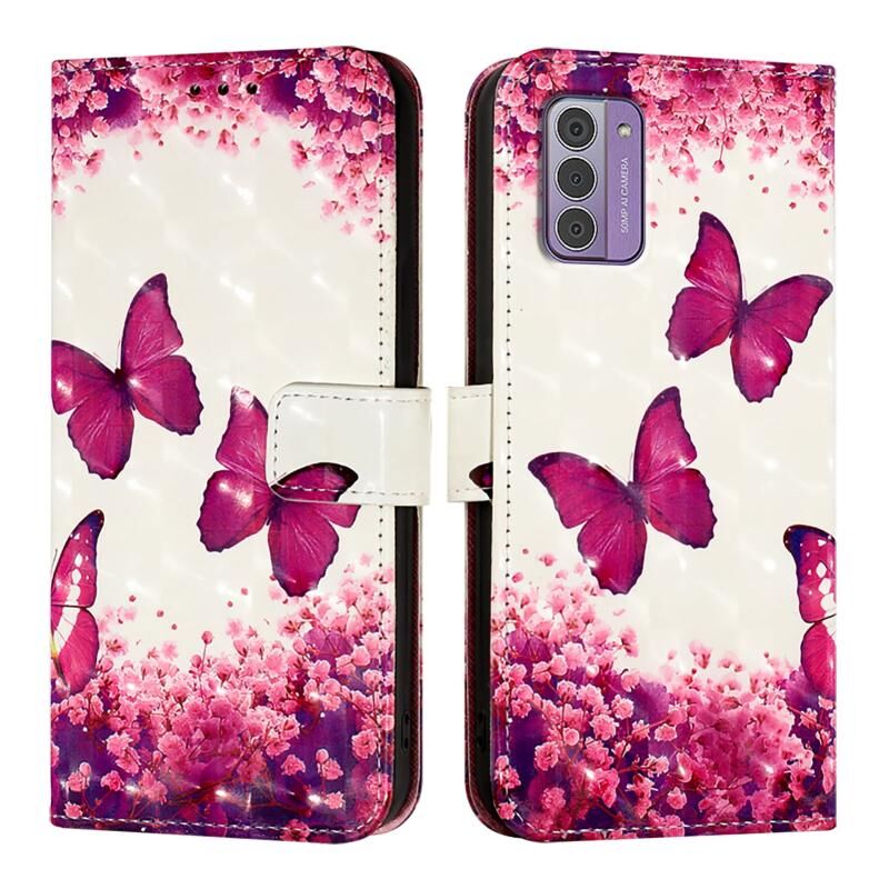 Θήκη τηλεφώνου από δέρμα με οριζόντια αναδίπλωση και τρισδιάστατη ζωγραφική για Nokia G42 / G310 (Ροζ Πεταλούδα)