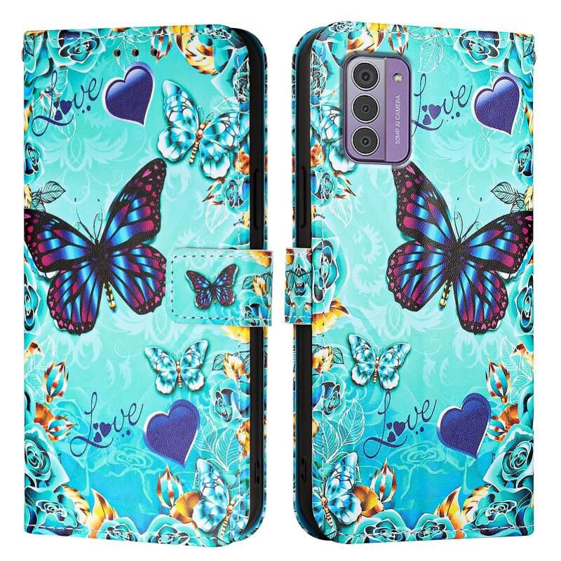 Θήκη τηλεφώνου από δέρμα με απλή ύφανση και πολύχρωμο σχέδιο (Αγάπη Πεταλούδα) για Nokia G42 / G310.