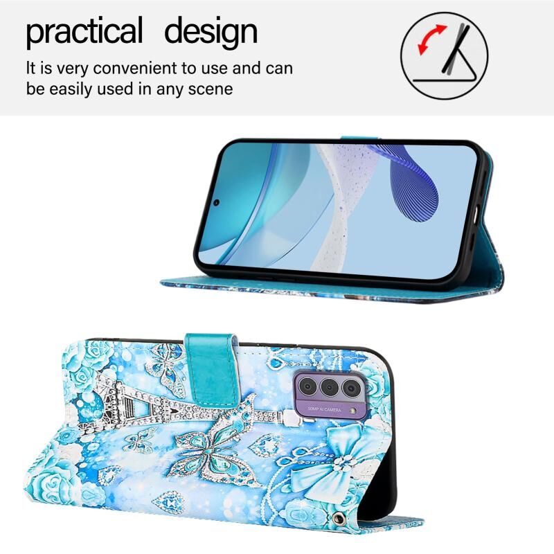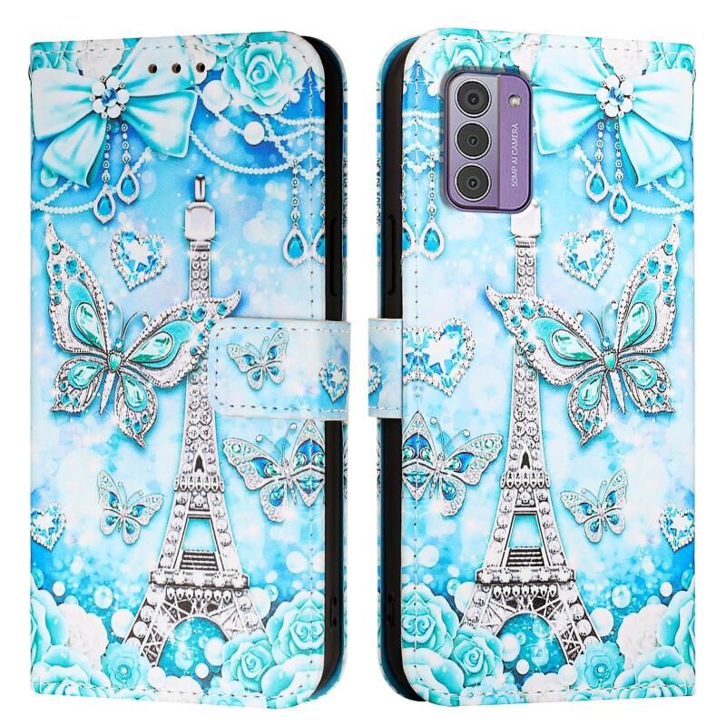 Θήκη τηλεφώνου από δέρμα με απλή ύφανση και πολύχρωμο σχέδιο (Tower Butterfly) για Nokia G42 / G310.