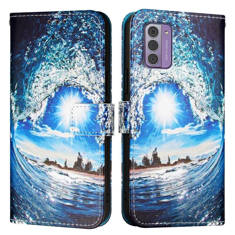 Θήκη τηλεφώνου από δέρμα με απλή ύφανση και πολύχρωμο σχέδιο (Κύματα και Ήλιος) για Nokia G42 / G310.