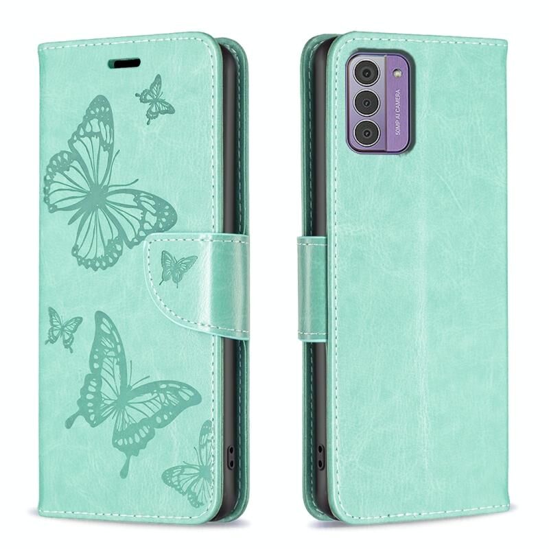 For Nokia G42/G310 Embossing Two Butterflies Pattern Horizontal Flip PU Leather Case(Green)