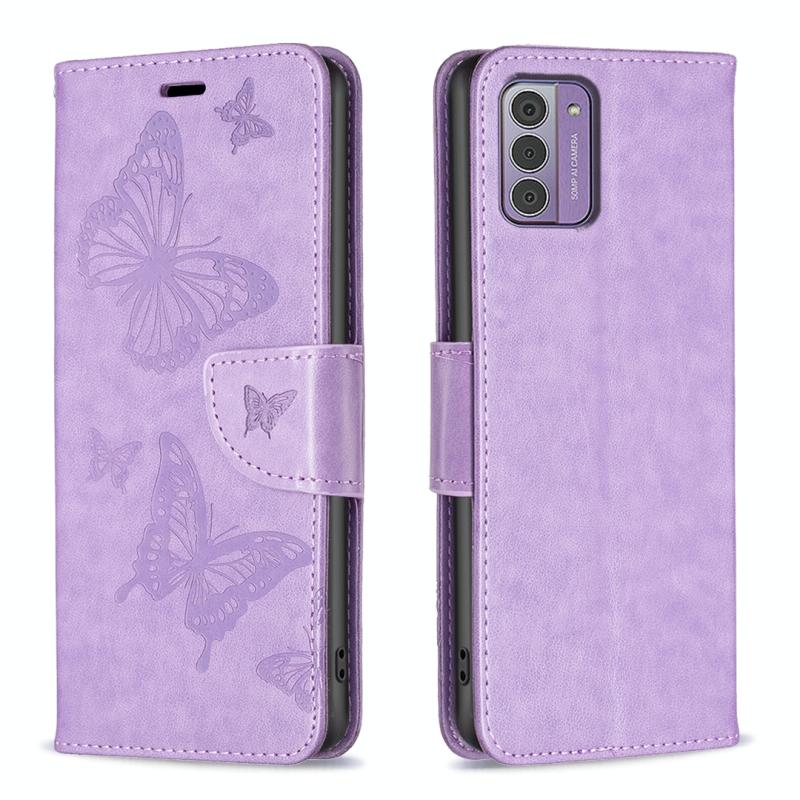 For Nokia G42/G310 Embossing Two Butterflies Pattern Horizontal Flip PU Leather Case(Purple)