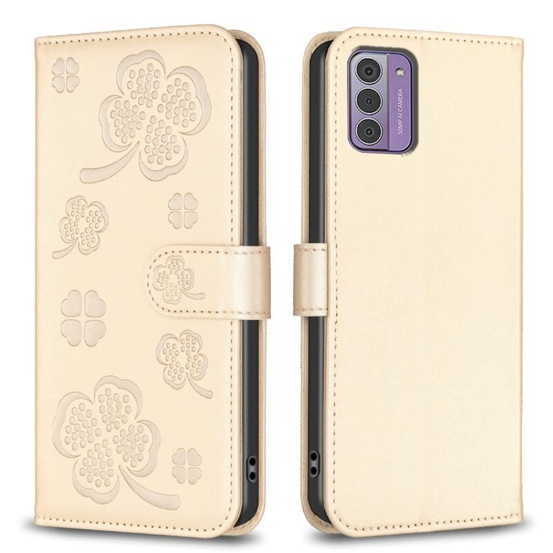 Για Nokia G42 / G310 τετράφυλλο ανάγλυφη δερμάτινη θήκη τηλεφώνου (χρυσό)