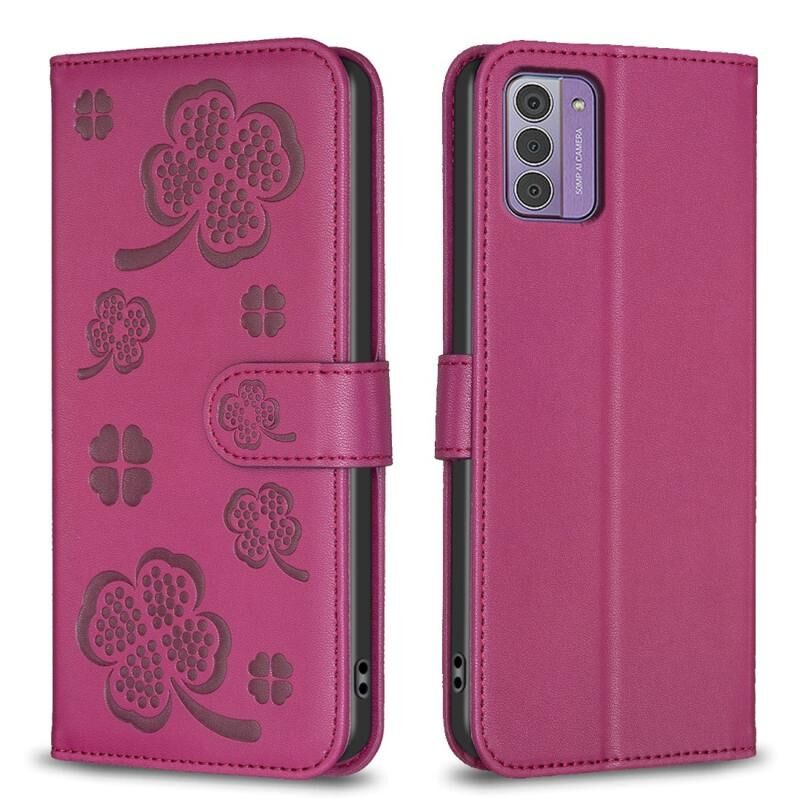 Για Nokia G42 / G310 τετράφυλλο ανάγλυφη δερμάτινη θήκη τηλεφώνου (Rose Red)