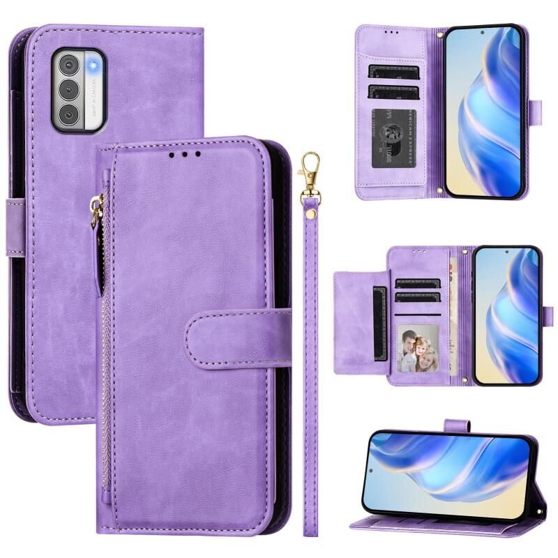Για Nokia G42 / G310 πολλαπλών καρτών υποδοχές φερμουάρ πορτοφόλι δερμάτινη θήκη τηλεφώνου (μωβ)