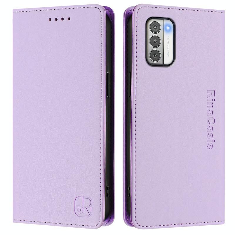 Θήκη τηλεφώνου από δέρμα με μαγνητική απορρόφηση και διπλή πτυχή για Nokia G42 / G310 RC01 (Μέντα Πράσινο)