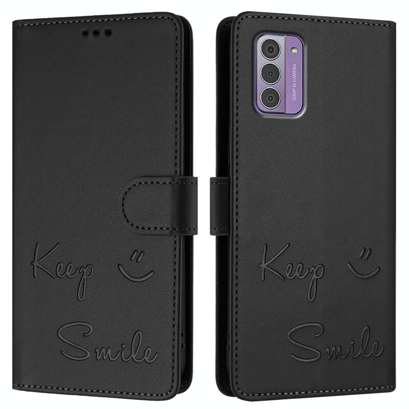 Για Nokia G42 / G310 Χαμόγελο ανάγλυφο RFID δερμάτινη θήκη τηλεφώνου (Μαύρο)
