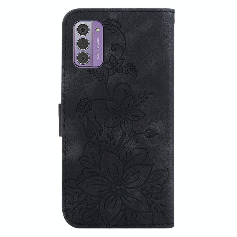 Για Nokia G42 Lily ανάγλυφη δερμάτινη θήκη τηλεφώνου (μαύρο)