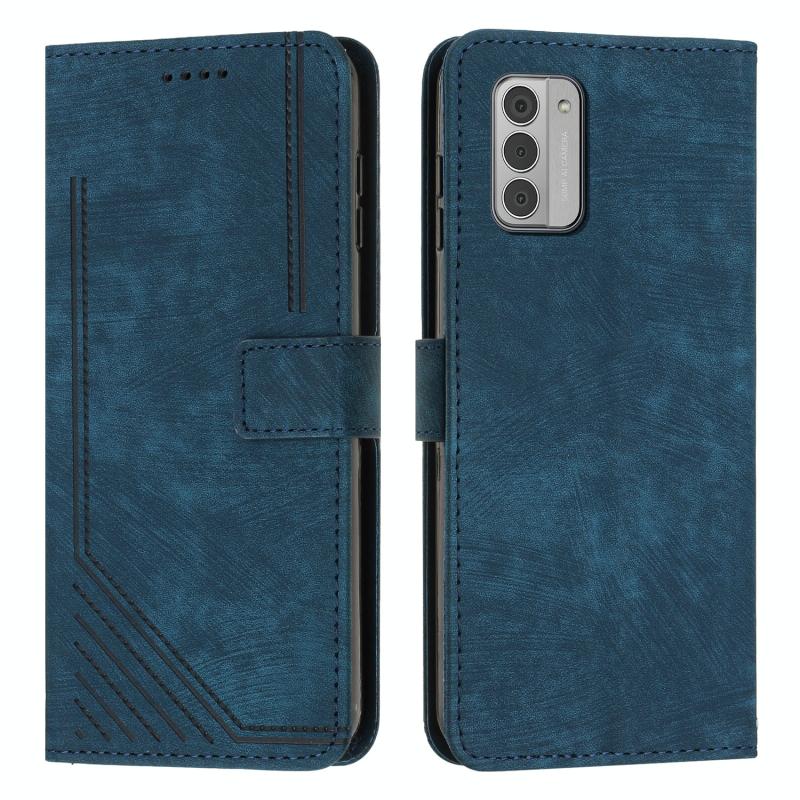 For Nokia G42 Skin Feel Stripe Pattern Leather Phone Case with Lanyard(Blue)