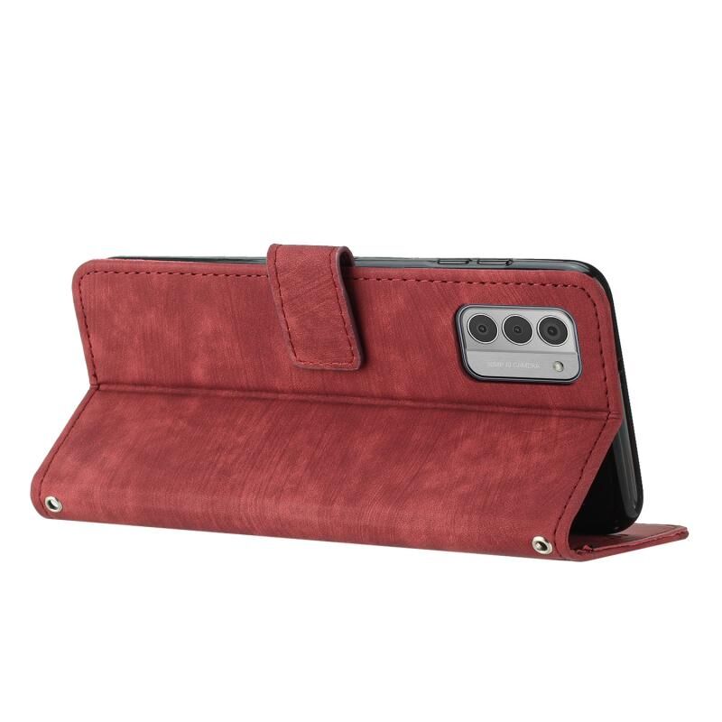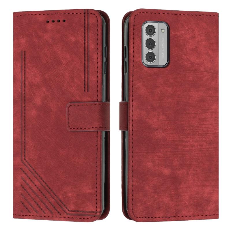 For Nokia G42 Skin Feel Stripe Pattern Leather Phone Case with Lanyard(Red)