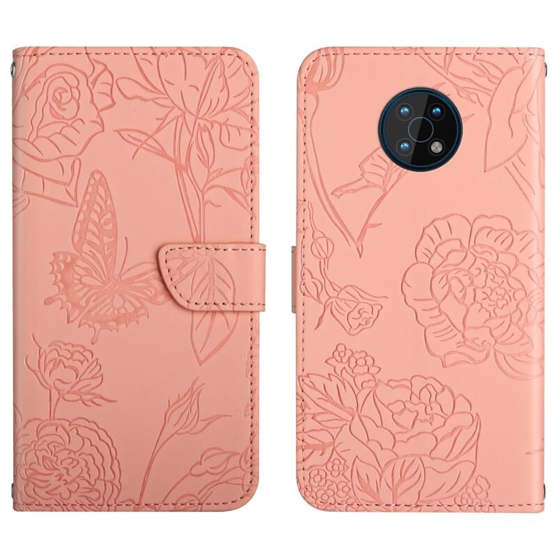 Θήκη τηλεφώνου από δέρμα με ανάγλυφο σχέδιο πεταλούδας και παιώνιας για Nokia G50 5G (Κόκκινο)