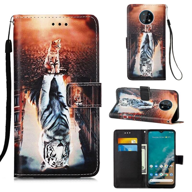 Θήκη τηλεφώνου από δέρμα με απλή ύφανση για Nokia G50 με έγχρωμο σχέδιο (Γάτα και Τίγρης)