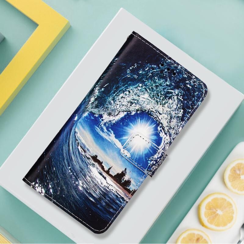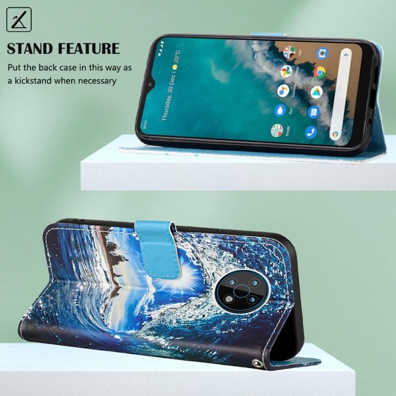 Θήκη τηλεφώνου από δέρμα με απλή ύφανση για Nokia G50, πολύχρωμη σχεδίαση (Κύματα και Ήλιος)