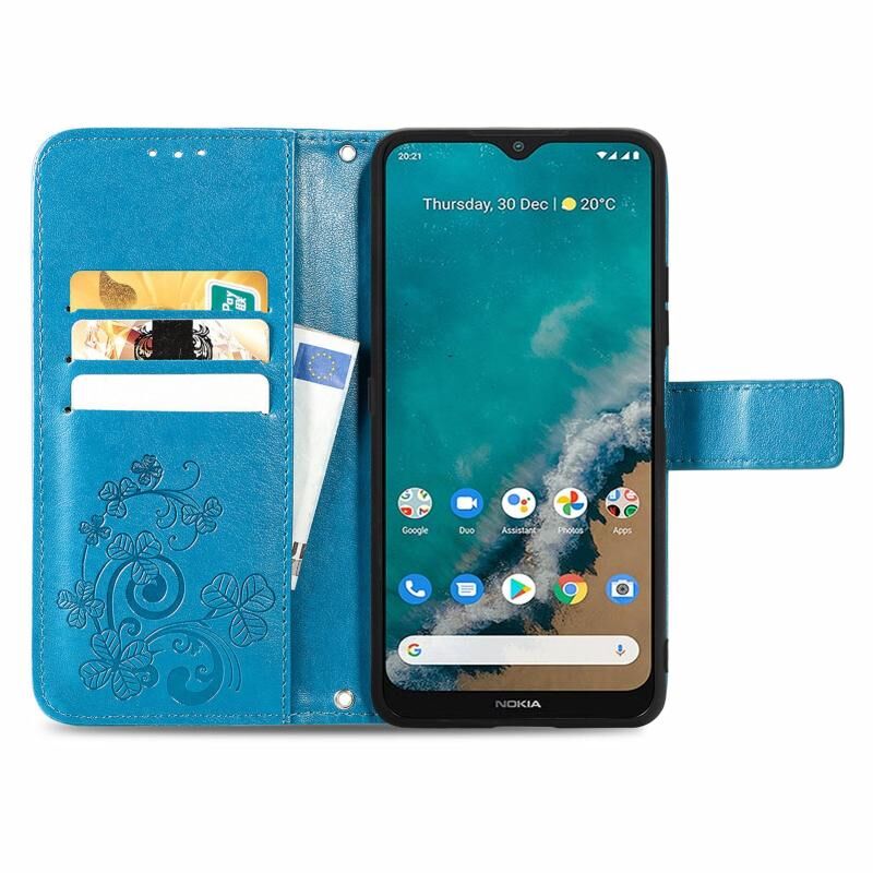 Για Nokia G50 Four-leaf Clasp ανάγλυφη δερμάτινη θήκη με κορδόνι & υποδοχές για κάρτες & πορτοφόλι & θήκη (μπλε)