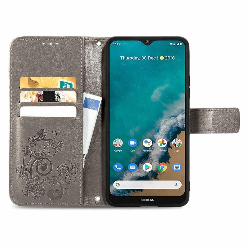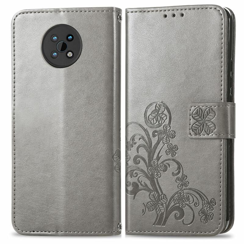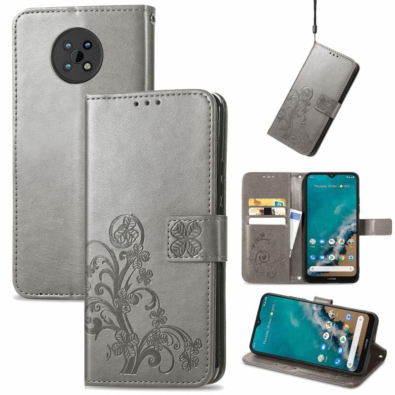 Για Nokia G50 Four-leaf Clasp ανάγλυφη δερμάτινη θήκη με κορδόνι & υποδοχές για κάρτες & πορτοφόλι & θήκη (γκρι)