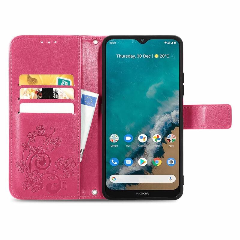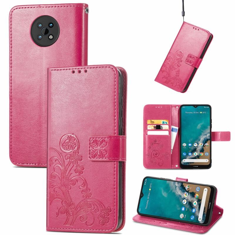 Για το Nokia G50 Four-leaf Clasp ανάγλυφη δερμάτινη θήκη με κορδόνι & υποδοχές για κάρτες & πορτοφόλι & θήκη για κάρτες(Magenta)