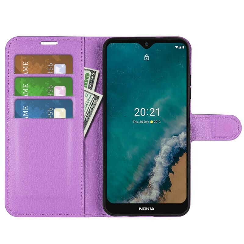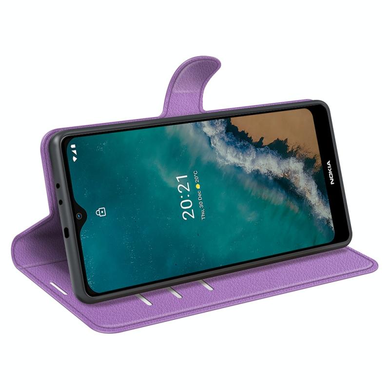 Θήκη Nokia G50 με Υφή Δέρματος, Βάση & Θήκες Καρτών, Πορτοφόλι (Μωβ)