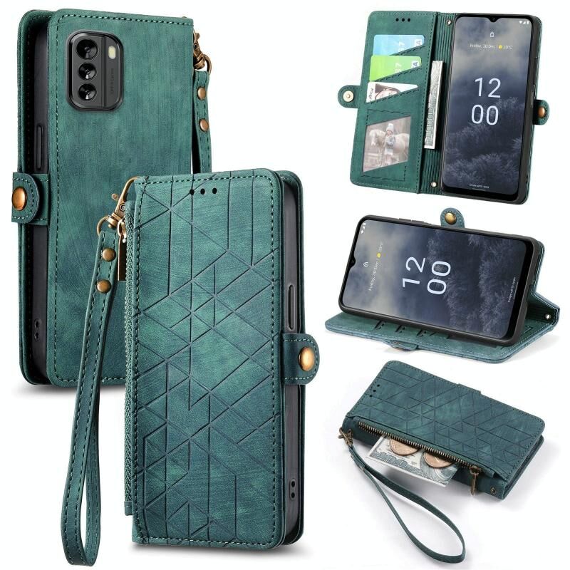 Για Nokia G60 5G γεωμετρική φερμουάρ πορτοφόλι πλευρά πόρπη δερμάτινη θήκη τηλεφώνου (πράσινο)