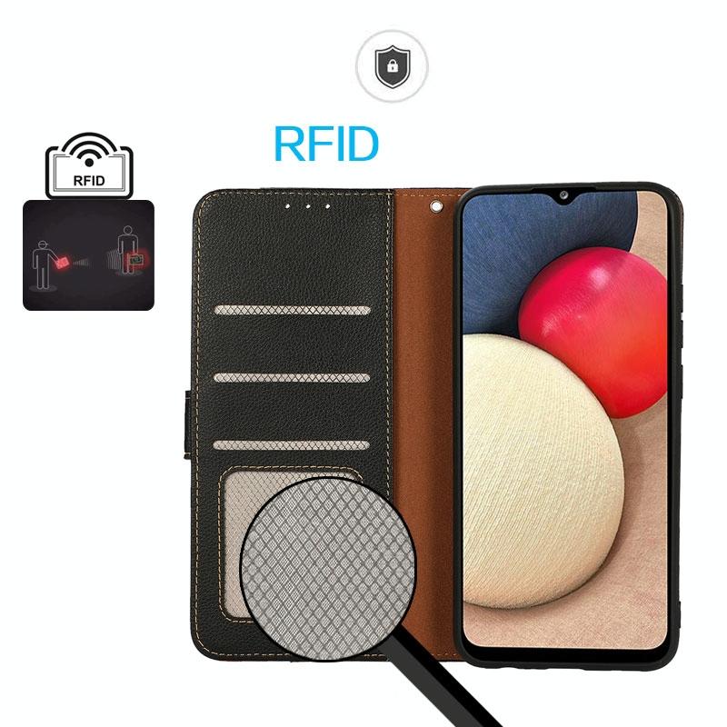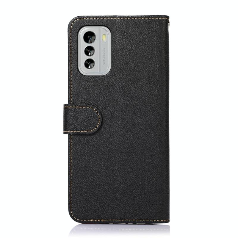 Θήκη κινητού τηλεφώνου Nokia G60 5G KHAZNEH από δέρμα με υφή λυτσί και προστασία RFID (Καφέ)
