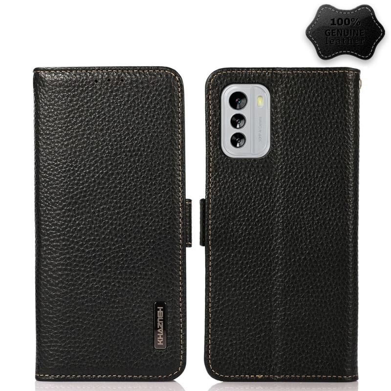 Θήκη τηλεφώνου με μαγνητικό κλείσιμο και γνήσιο δέρμα Litchi για Nokia G60 5G KHAZNEH (Μαύρο)