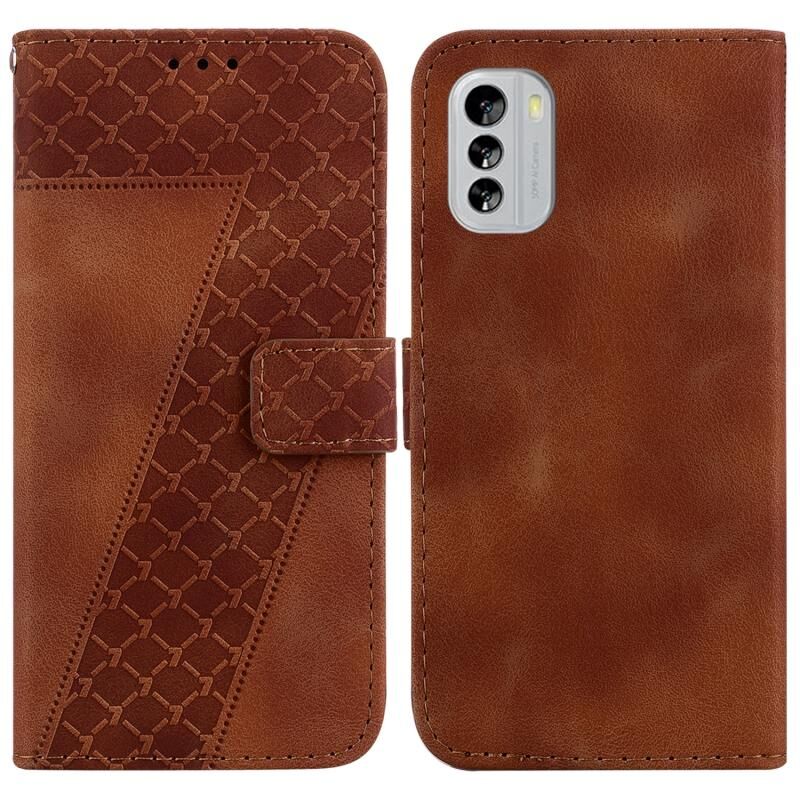 Για το Nokia G60 7-σχήμα ανάγλυφη δερμάτινη θήκη τηλεφώνου (καφέ)