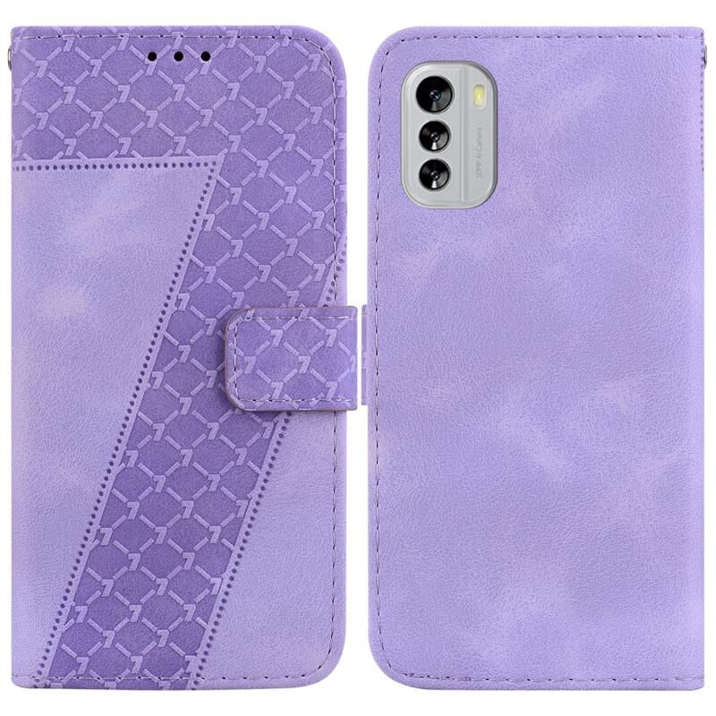 Για το Nokia G60 7-σχήμα ανάγλυφη δερμάτινη θήκη τηλεφώνου (μωβ)