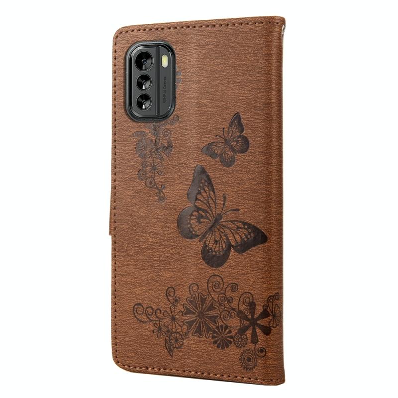 Θήκη τηλεφώνου από δέρμα με οριζόντιο άνοιγμα και ανάγλυφο σχέδιο πεταλούδας για Nokia G60 (Κόκκινο)