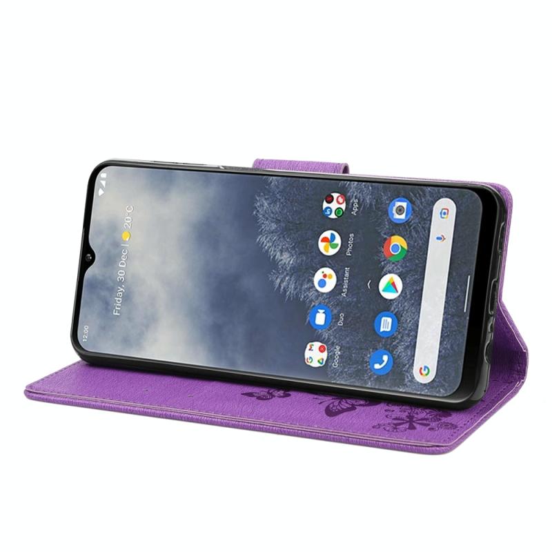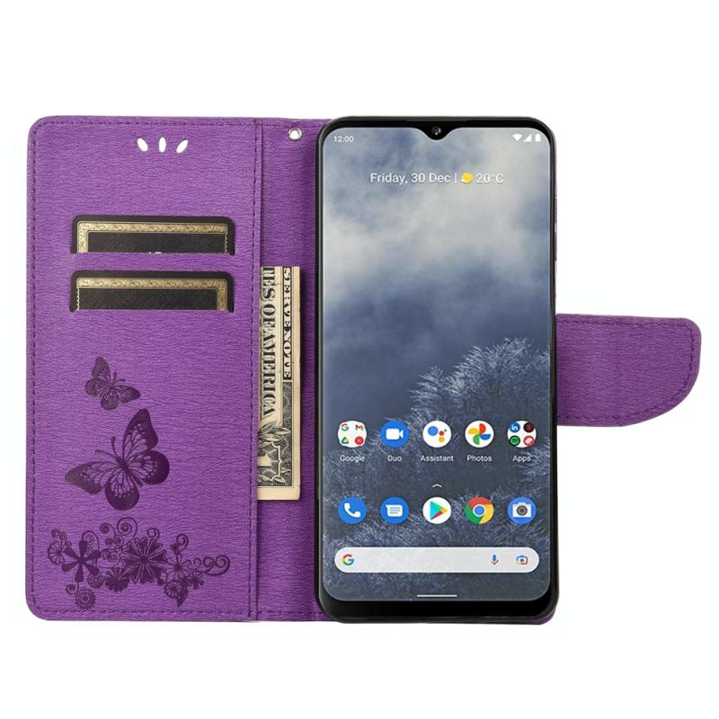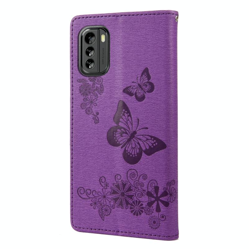 Θήκη τηλεφώνου από δέρμα με οριζόντιο άνοιγμα και ανάγλυφο σχέδιο πεταλούδας για Nokia G60 (Κόκκινο)