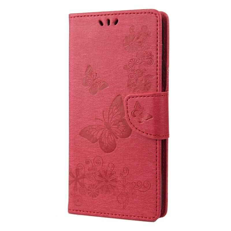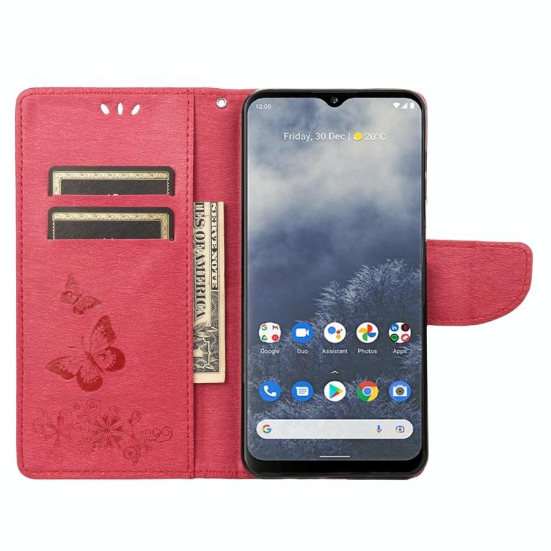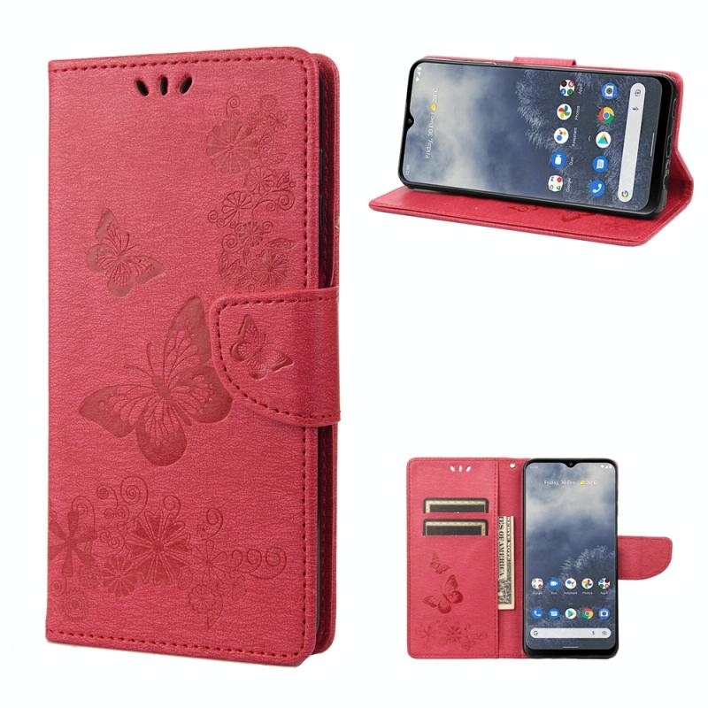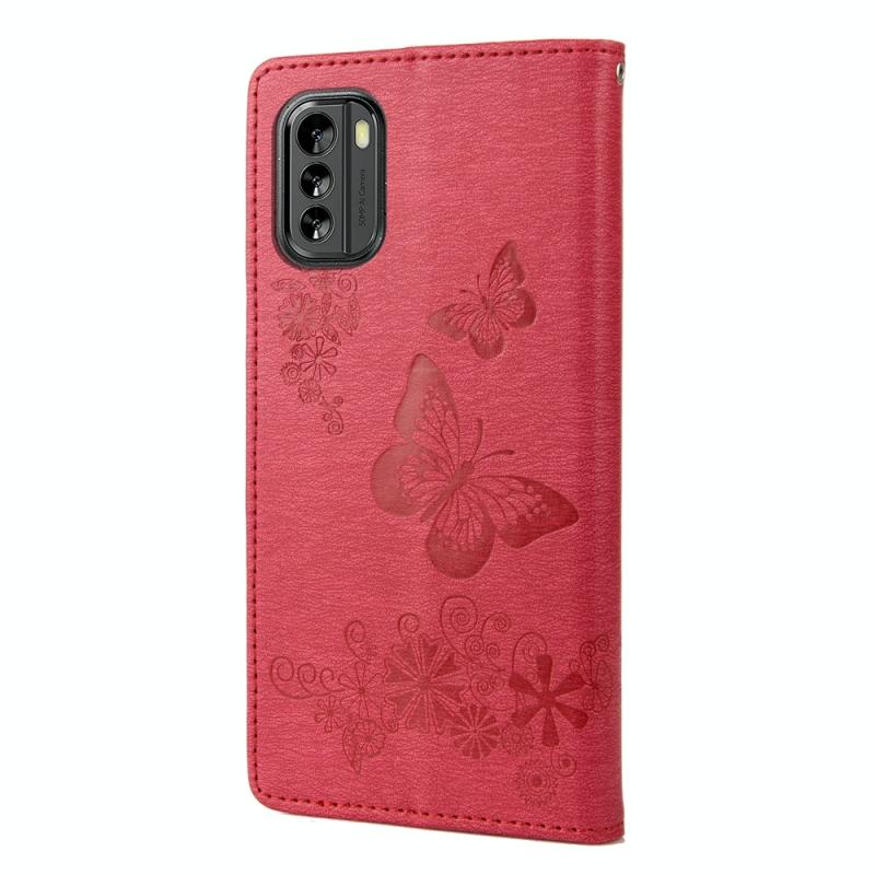 Θήκη τηλεφώνου από δέρμα με οριζόντιο άνοιγμα και ανάγλυφο σχέδιο πεταλούδας για Nokia G60 (Κόκκινο)