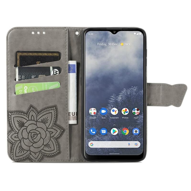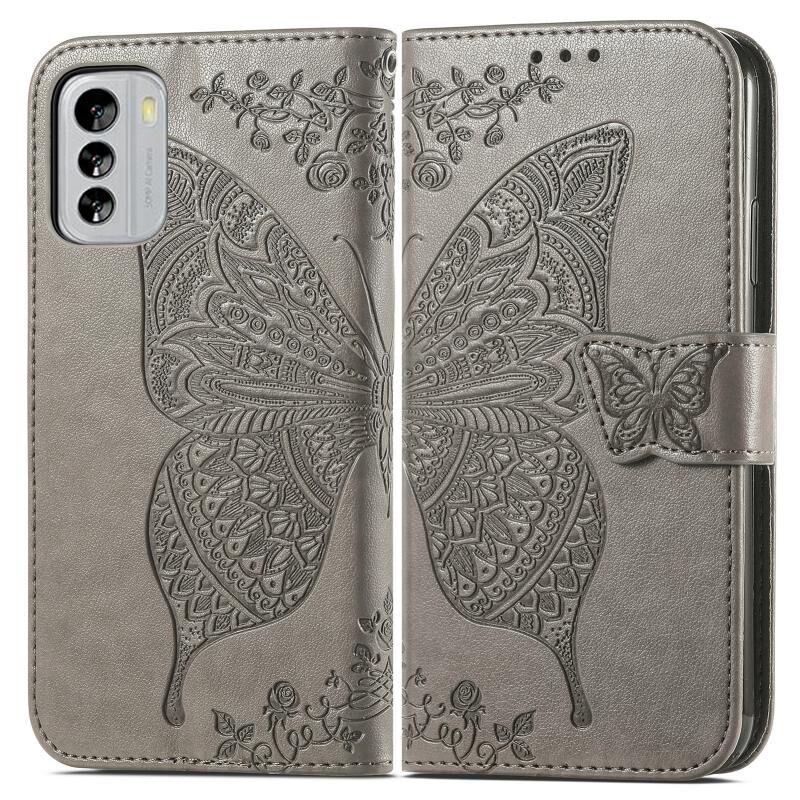 Θήκη δέρματος οριζόντιας αναδίπλωσης για Nokia G60 με ανάγλυφο σχέδιο πεταλούδας, λουλουδιών, βάση στήριξης / υποδοχή κάρτας / πορτοφόλι / κορδόνι (Μαύρο)