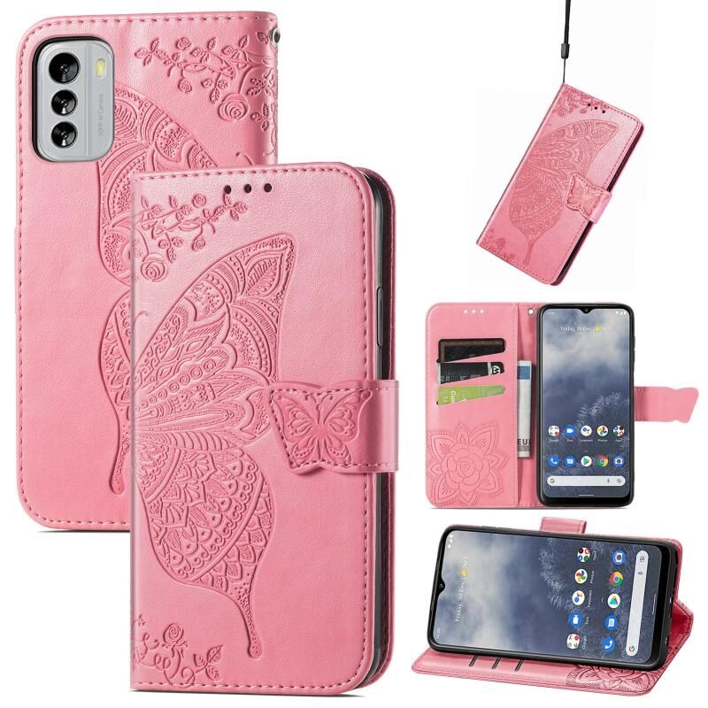 Θήκη δέρματος οριζόντιας αναδίπλωσης για Nokia G60 με ανάγλυφο σχέδιο πεταλούδας, λουλουδιών, βάση στήριξης / υποδοχή κάρτας / πορτοφόλι / κορδόνι (Μπλε)