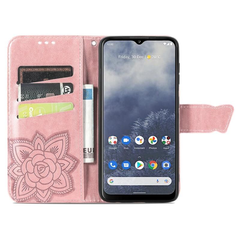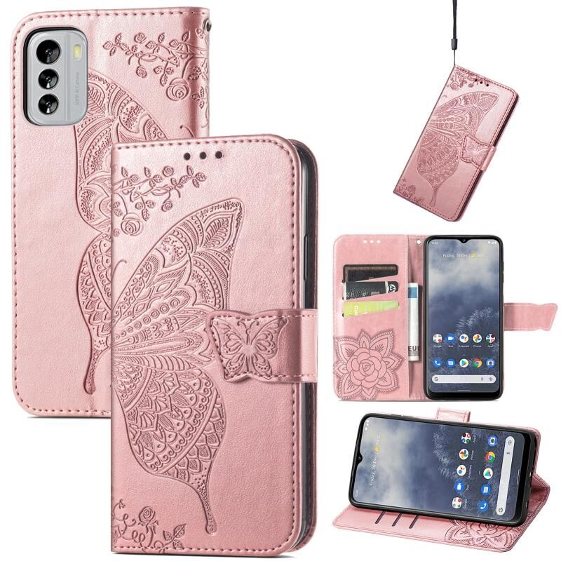 Θήκη δέρματος οριζόντιας αναδίπλωσης για Nokia G60 με ανάγλυφο σχέδιο πεταλούδας, λουλουδιών, βάση στήριξης / υποδοχή κάρτας / πορτοφόλι / κορδόνι (Μαύρο)
