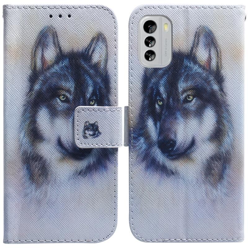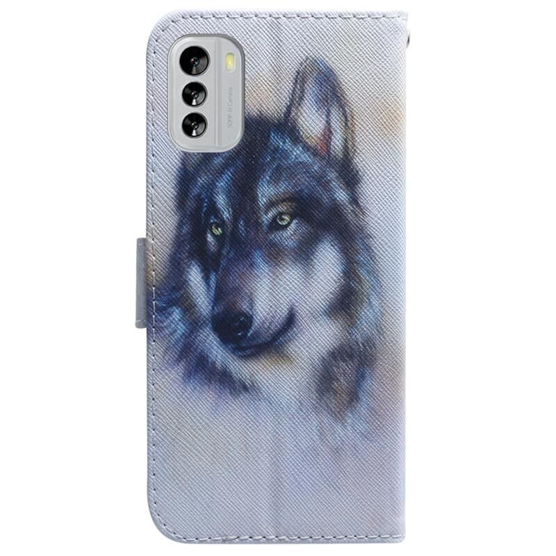 Θήκη τηλεφώνου από δέρμα με σχέδιο και αναδιπλούμενο καπάκι για Nokia G60 (Λευκός Λύκος)