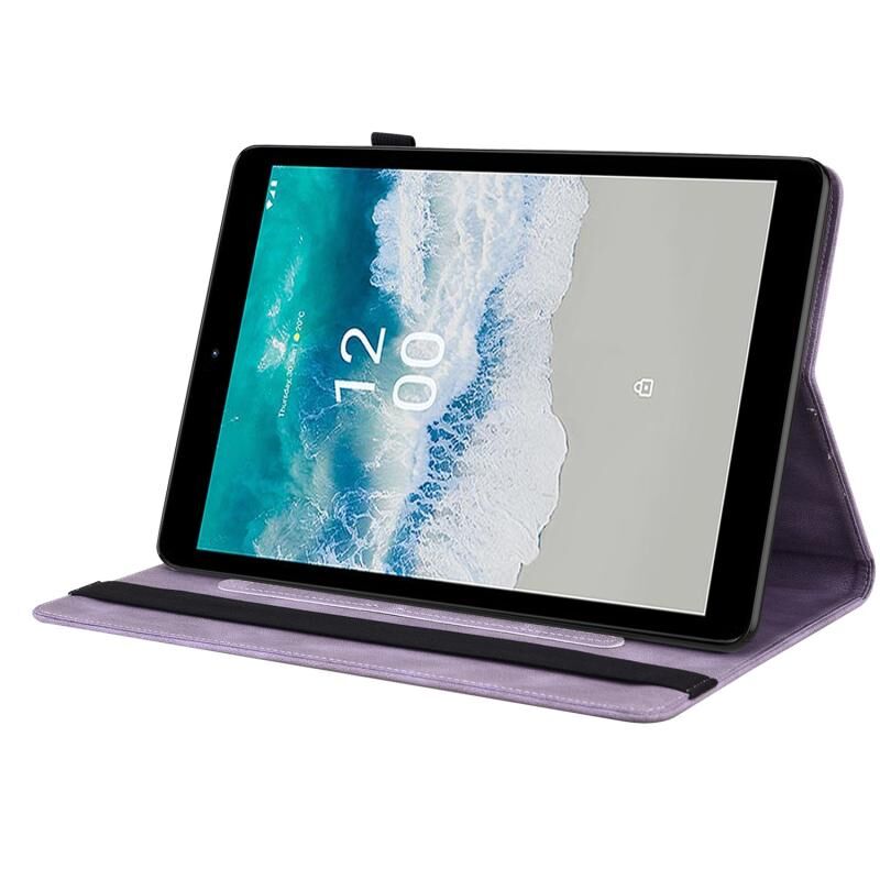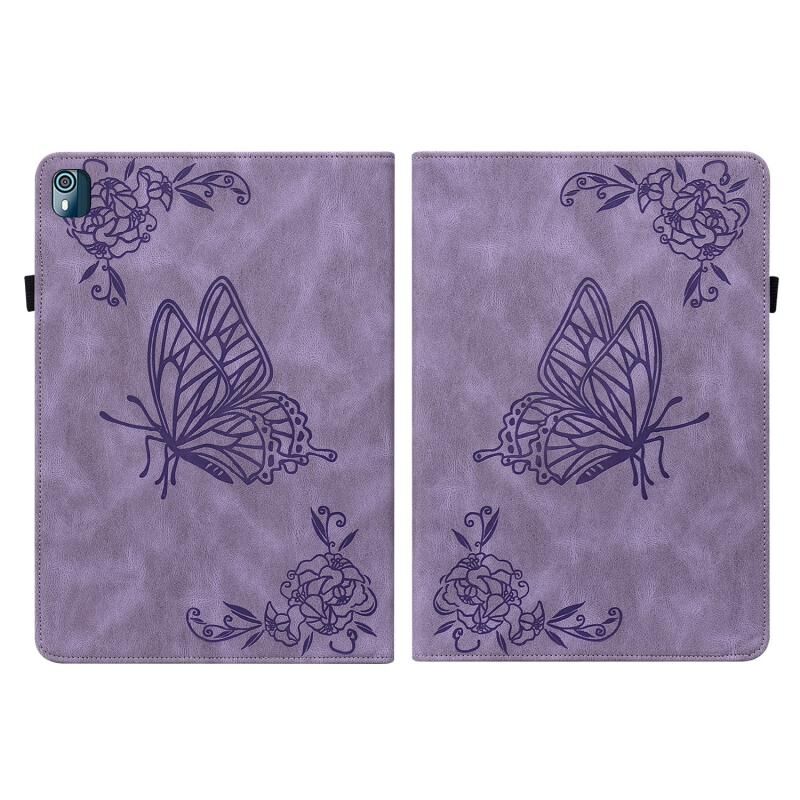 For Nokia T10 Butterfly Flower Embossed Leather Tablet Case(Purple)