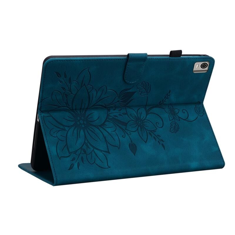 Για Nokia T10 Lily ανάγλυφη δερμάτινη θήκη tablet (σκούρο μπλε)