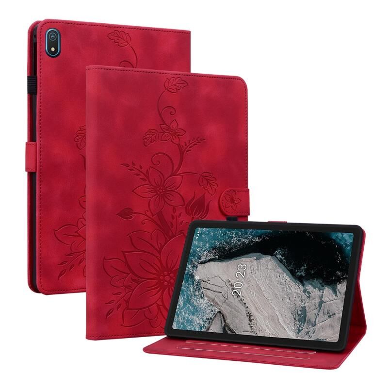 Για Nokia T20 10.4 2021 Lily ανάγλυφη δερμάτινη θήκη tablet (κόκκινο)