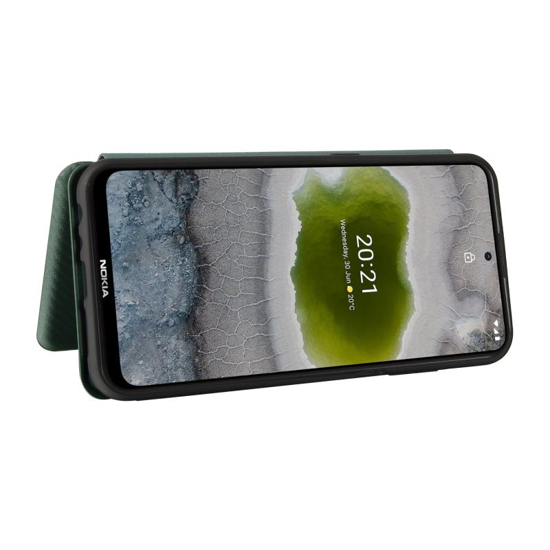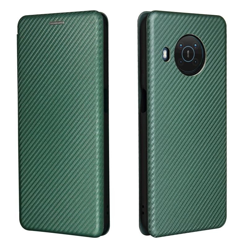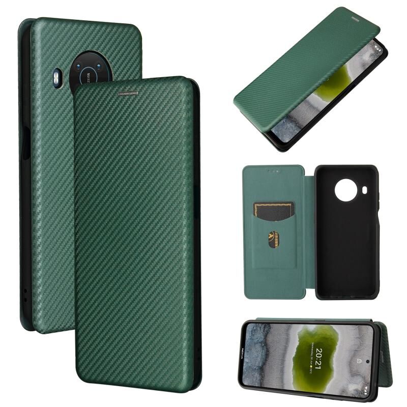 For Nokia X10 Carbon Fiber Texture Horizontal Flip TPU + PC + PU Leather Case with Card Slot(Green)