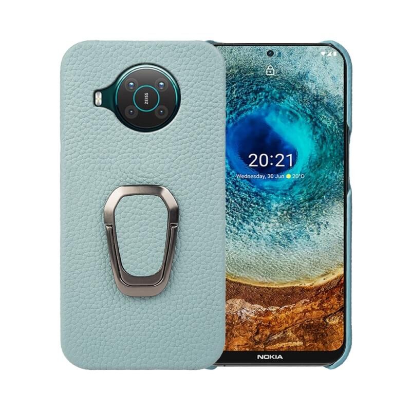 Για Nokia X10 Δακτύλιος κάτοχος Litchi Υφή γνήσιο δέρμα τηλέφωνο υπόθεση (κυανό)