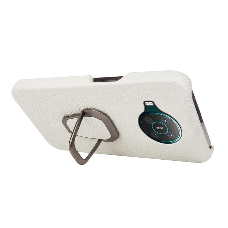Για Nokia X10 Δακτύλιος κάτοχος Litchi Υφή γνήσιο δέρμα τηλέφωνο υπόθεση (λευκό)