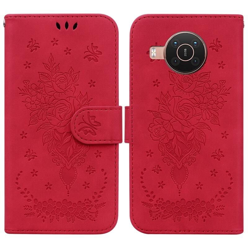 Για Nokia X10 / X20 Πεταλούδα Rose ανάγλυφη δερμάτινη θήκη τηλεφώνου (κόκκινο)