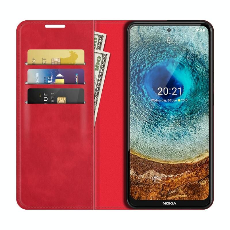 Για Nokia X10/X20 Retro-skin Business Μαγνητική δερμάτινη θήκη αναρρόφησης με θήκη & υποδοχές καρτών & πορτοφόλι (κόκκινο)