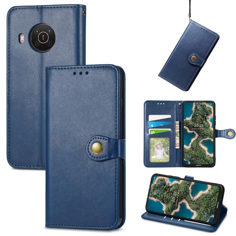 Για Nokia X10 / X20 Ρετρό στερεό χρώμα πόρπη δερμάτινη θήκη τηλεφώνου (μπλε)