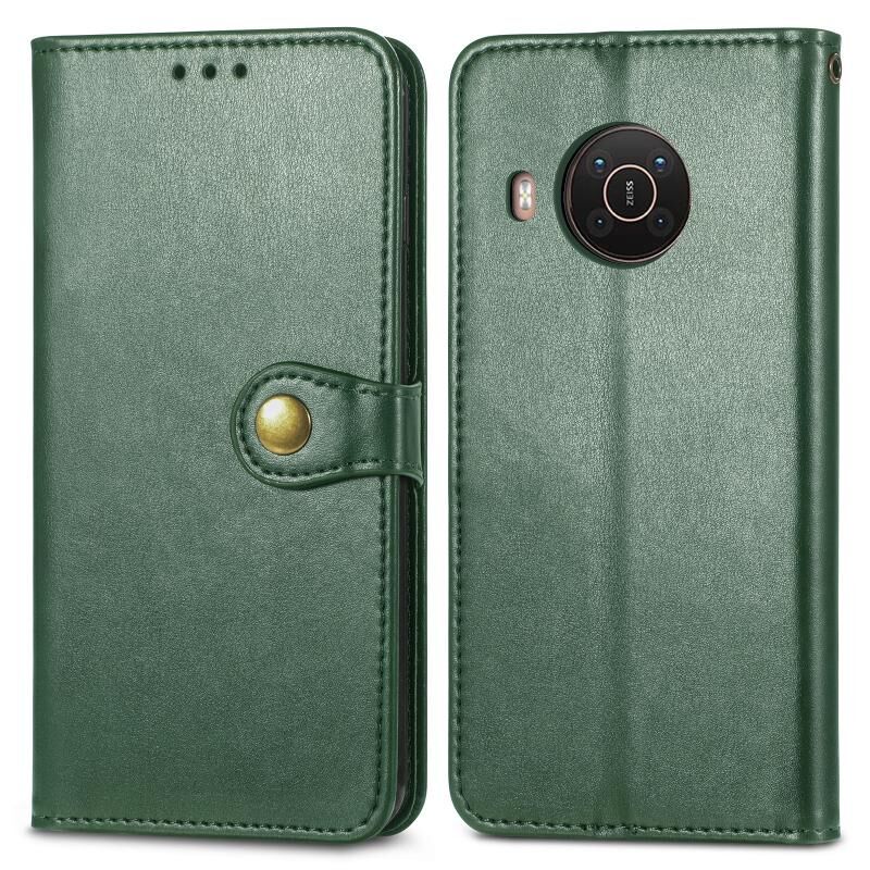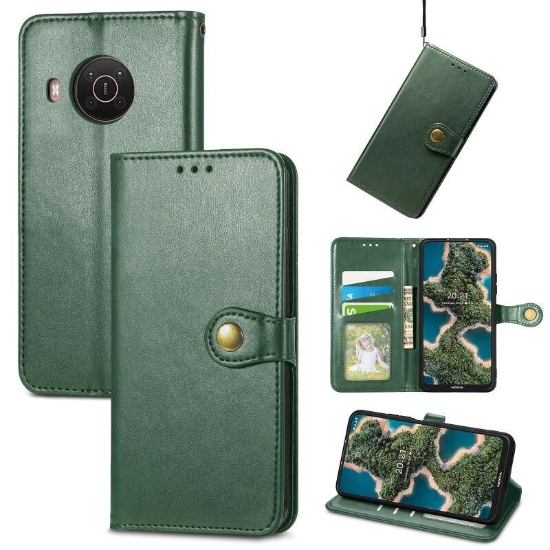 Για Nokia X10 / X20 Ρετρό στερεό χρώμα πόρπη δερμάτινη θήκη τηλεφώνου (πράσινο)