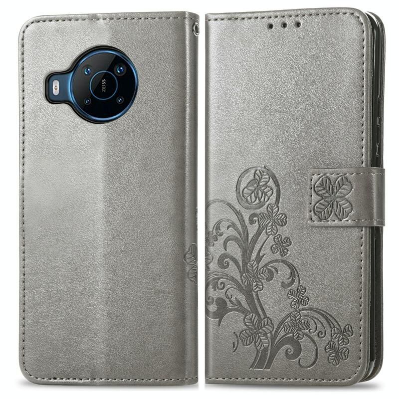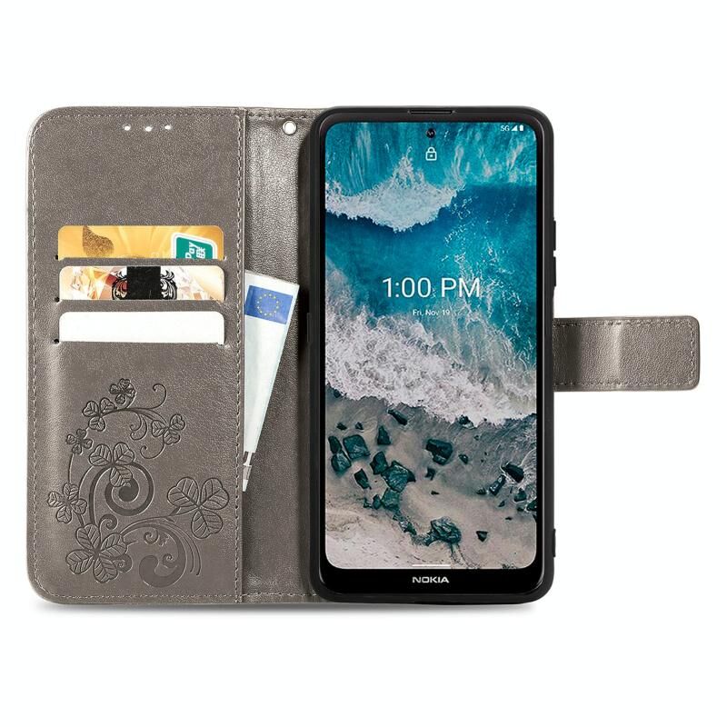 Για Nokia X100 5G Four-leaf κούμπωμα ανάγλυφη αγκράφα δερμάτινη θήκη τηλεφώνου (γκρι)