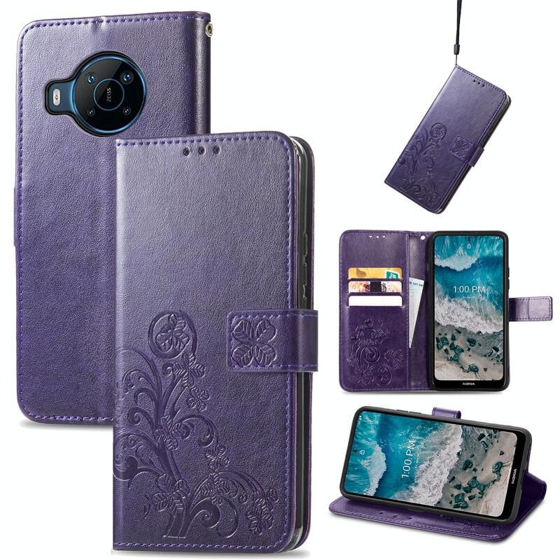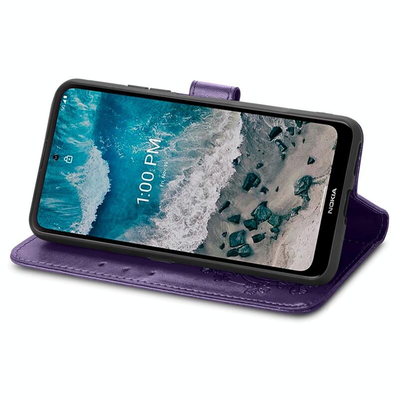 Για Nokia X100 5G Four-leaf κούμπωμα ανάγλυφο πόρπη δερμάτινη θήκη τηλεφώνου (μωβ)