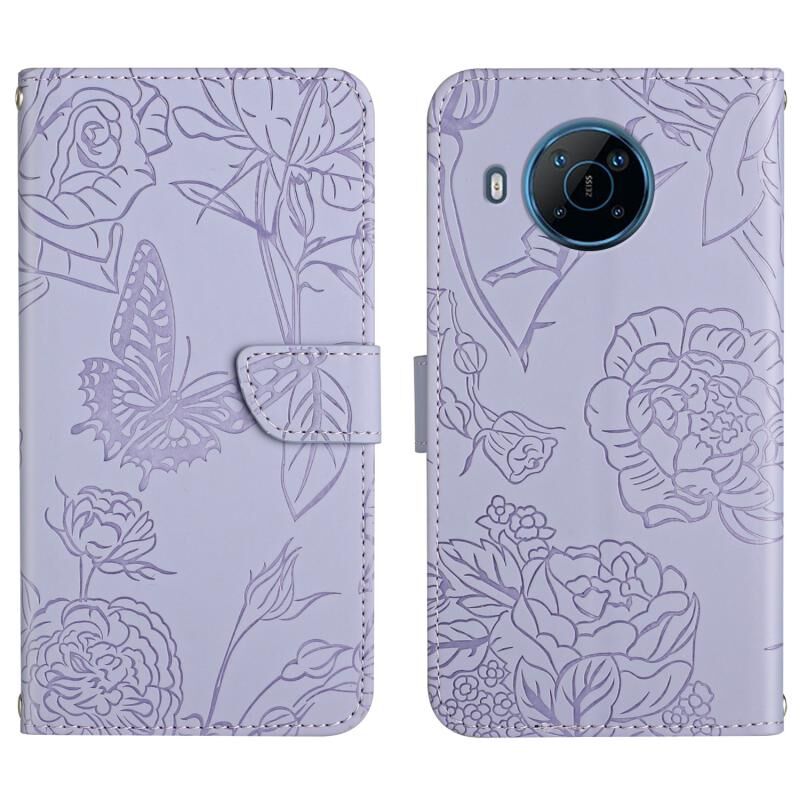 Για το Nokia X100 Skin Feel Πεταλούδα Peony ανάγλυφη δερμάτινη θήκη τηλεφώνου (μωβ)